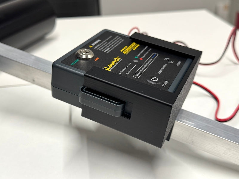 The iLaunch Mount for the Mantis Launch Pad retains the new iLaunch wireless launch controller control box on the Mantis. The mount is made of 3D printed ABS plastic and securely slips over one of the Mantis' aluminum legs, to keep the iLaunch control box off the ground and out of the path of the rocket motor's exhaust. The iLaunch power button and arm/disarm key switch remain accessible and the status light and buzzer/alarm port easily visible. A must-have accessory for all Mantis launch pad owners!