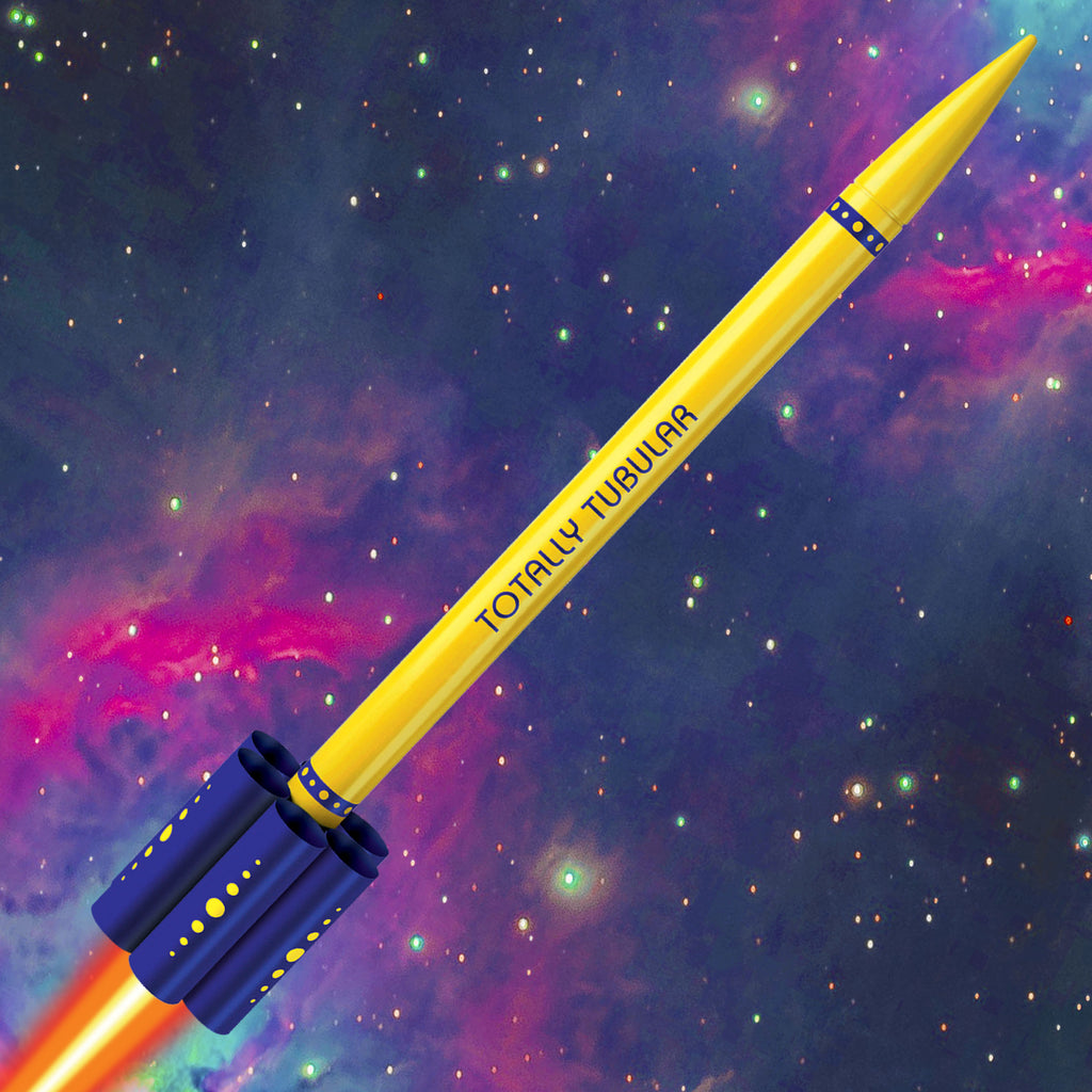 Everyone should have at least one tube-fin rocket in their collection. A great flier, the Totally Tubular model is durable and will take all the hard landings you can dish out. Unique design utilizes tube-fin stabilization. Very easy to build. All the tubes are already colored, and the decals are self-adhesive for easy application. No painting required! Fun to fly with streamer recovery.