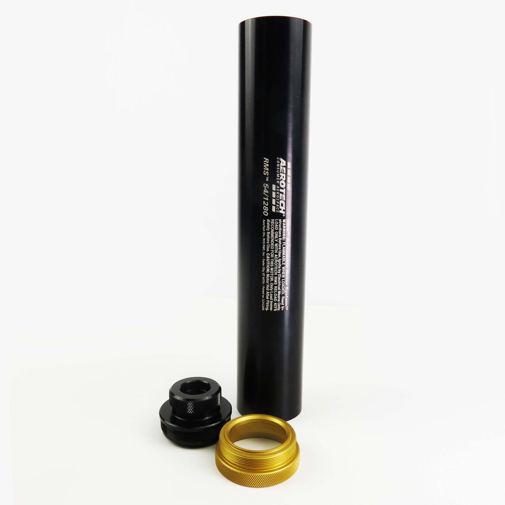 For use with all AeroTech RMS-54/1280 high power motor reload kits. This reusable AeroTech RMS-54/1280 motor hardware set includes the aluminum motor case, motor forward closure, forward seal disc, motor aft closure, and a 1cc tube of the Super-Lube grease for assembly. Motor reloads sold separately. Important: High Power RMS reload kits are not compatible with Mid Power RMS products.
