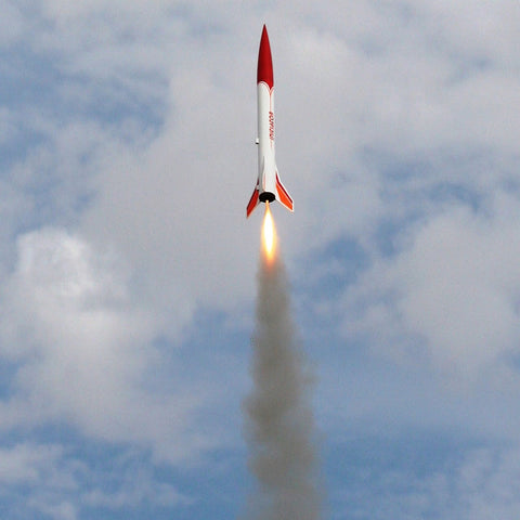 Launch supplies sold separately. Flying with E, F and G rocket motors requires the AeroTech Mantis Launch Pad (89281), AeroTech Interlock Launch Controller (893891), 24mm Q-Jet™, Enerjet or AeroTech rocket motors with FirstFire™ Initiators and Recovery Wadding. A 12-volt battery source is required for the AeroTech Interlock Launch Controller - Not Included.